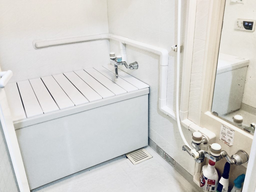 『写真』は給湯管配管後の浴室となります。メーターや給湯器のあるパイプシャフトから浴室に直に配管して、洗面、キッチンへと分配して配管しました。